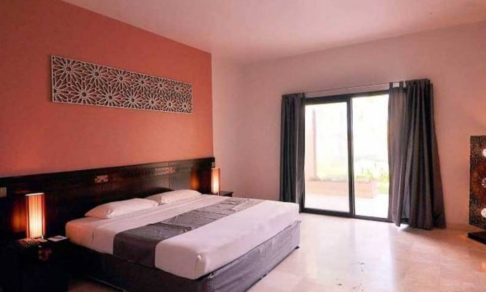L'établissement compte une centaine de chambres sous forme de petites unités individuelles ou semi-individuelles réparties dans les jardins. Les chambres sont vastes et confortables, elles offrent une vue agréable sur les jardins ou sur la plage. Leur équipement et ameublement comprend de grands lits doubles ou jumeaux, la climatisation, une salle de bain, la télévision et le téléphone, un coffre-fort et un mini bar.