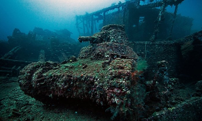 Sur les épaves, on trouve en partie du matériel militaire, des pièces d'artillerie, des tanks, des camions, des motos, des avions, des munitions de toute taille mais aussi des équipements personnels. Tous ces objets se sont transformés sous l'eau en un récif artificiel touffu et magnifique, enveloppé dans des coraux durs ou mous. On trouve une faune exotique extrêmement riche, cachée dans les éponges. On rencontre des bancs de poissons des récifs mais aussi entre autres des barracudas, des tortues et des raies.